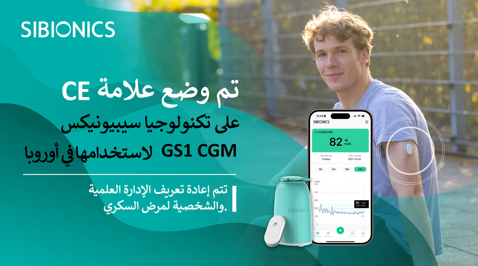 يسر SIBIONICS، ثالث أكبر علامة تجارية لـ CGM في جميع أنحاء العالم، أن تعلن عن حصولها على علامة CE لنظامها الثوري GS1 لمراقبة الجلوكوز المستمر (CGM). يمثل هذا الإنجاز الهام إنجازًا كبيرًا لشركة SIBIONICS ويمهد الطريق لتوزيع واستخدام هذه التكنولوجيا التي ستغير قواعد اللعبة في جميع أنحاء السوق الأوروبية.