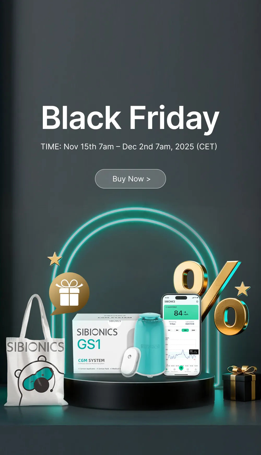 Each GS1 CGM is designed to last for 14 days to ensure optimal accuracy and a comfortable wearing experience. After 14 days of use, the SIBIONICS app will prompt you to replace the sensor with a new one.